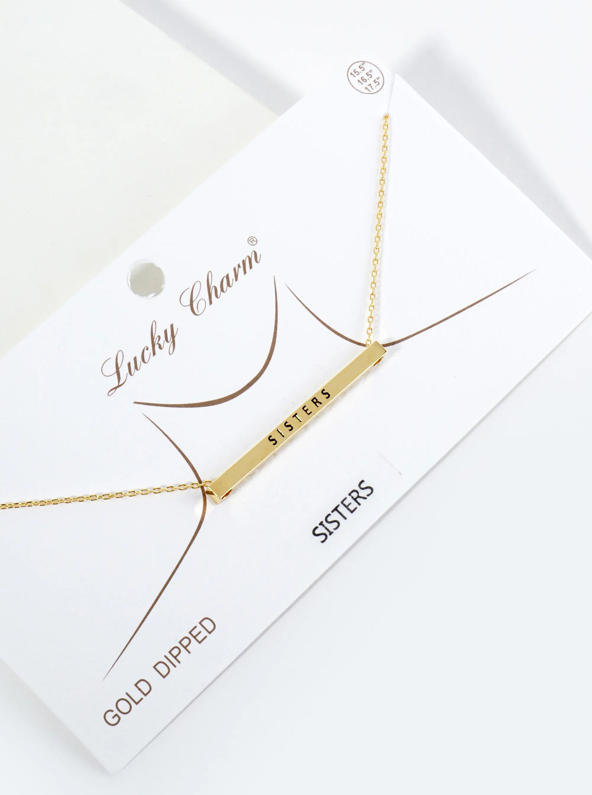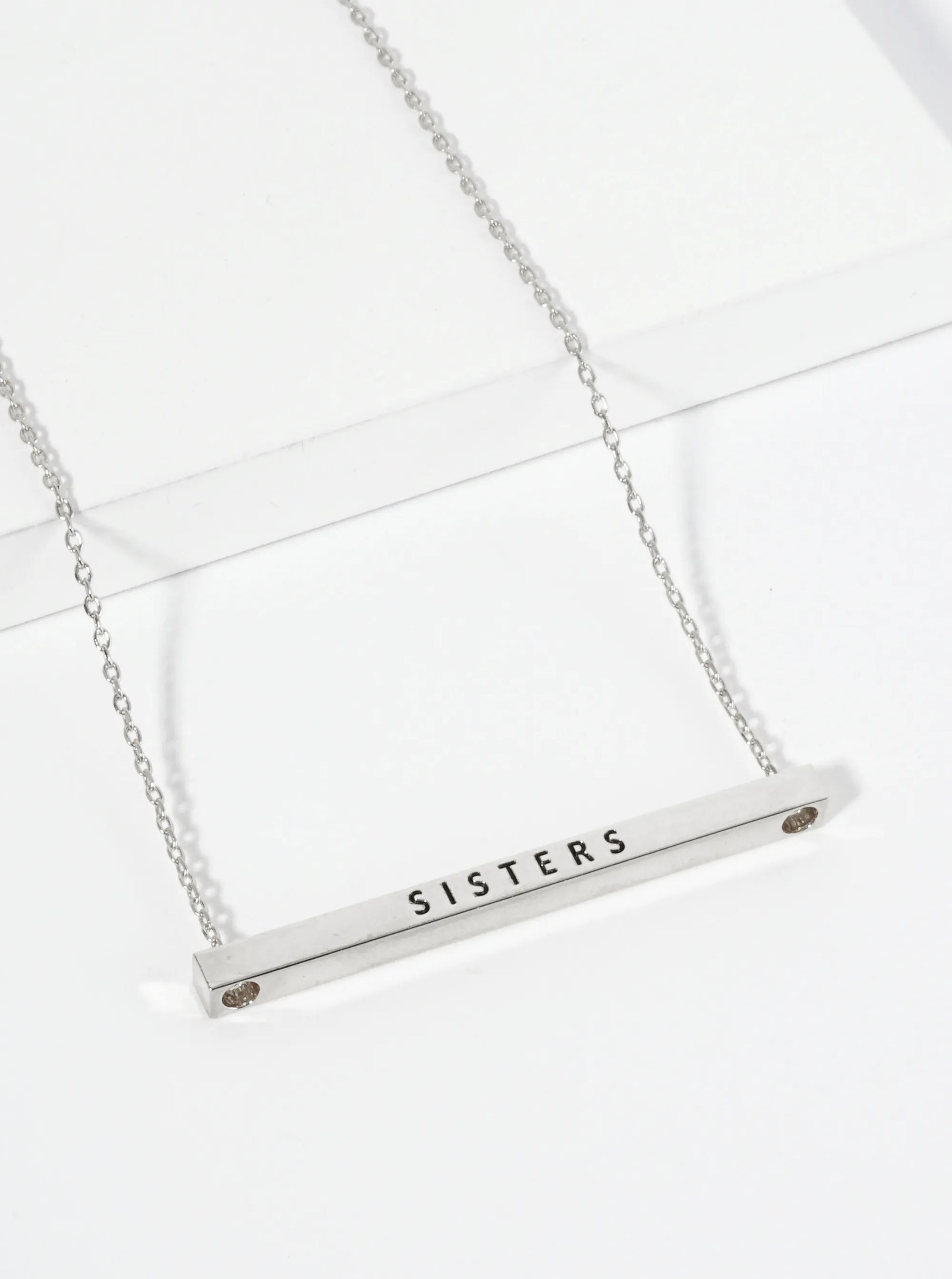 Sisters Engraved 18K Gold Dipped Horizontal Brass Bar Pendant Inspirational Necklace