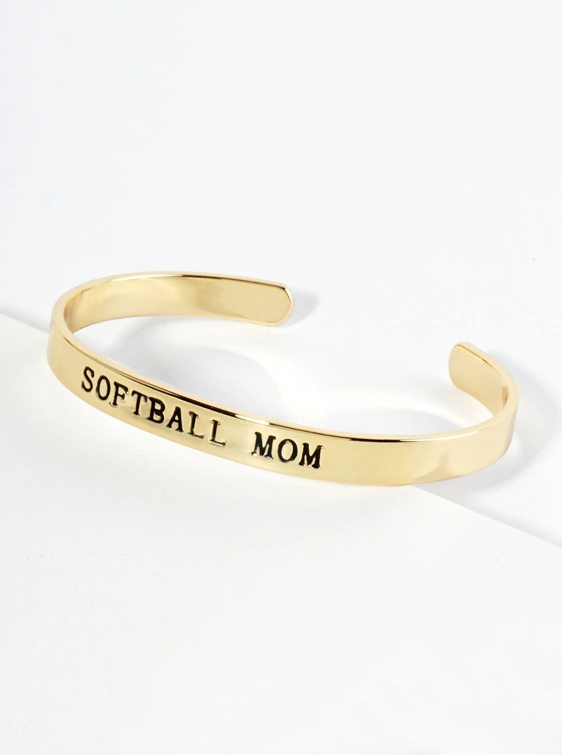 Softball Mom Engraved 18K Gold Dipped Open Cuff Bangle Bracelet