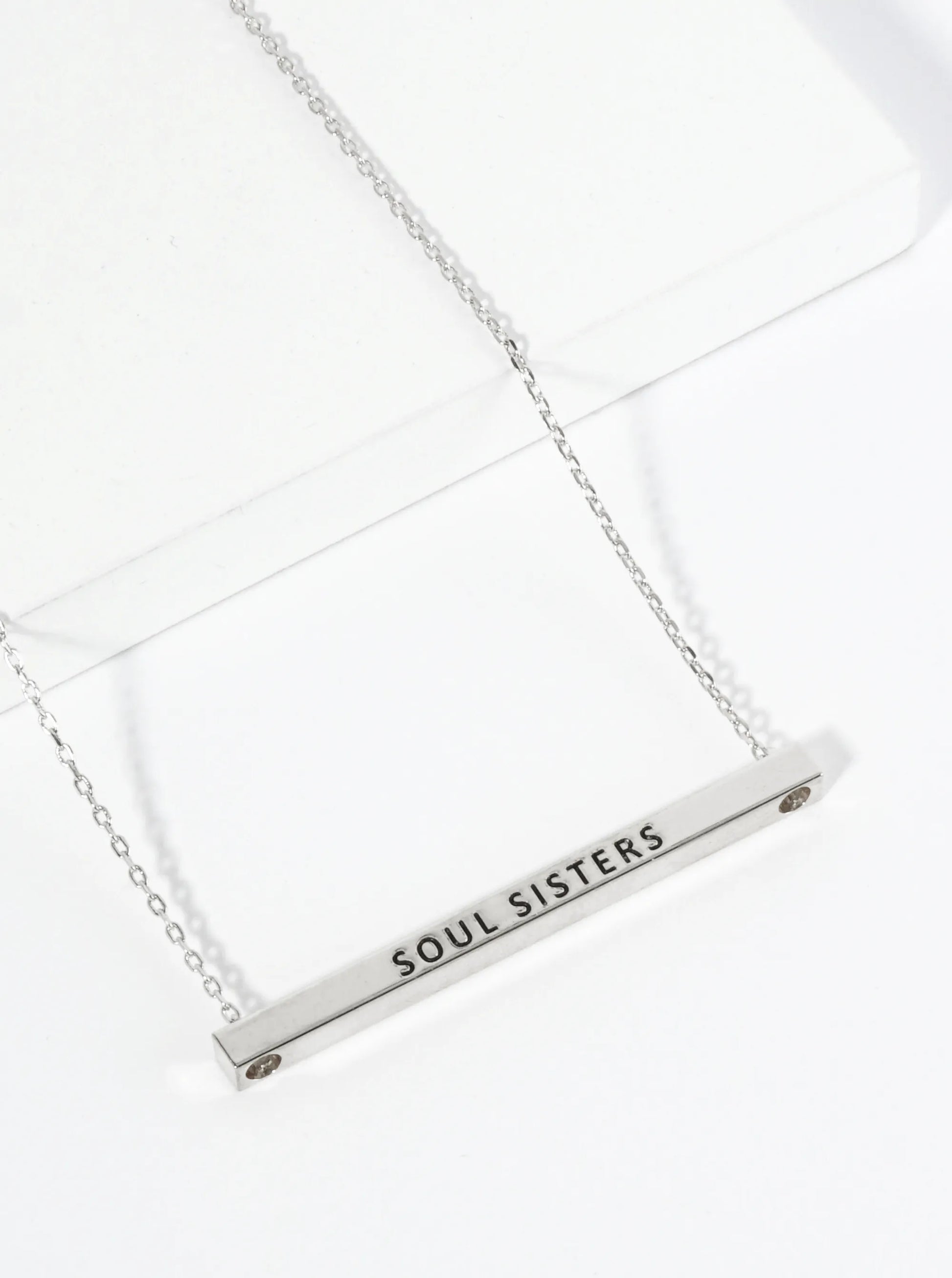 Soul Sisters Engraved 18K Gold Dipped Horizontal Brass Bar Pendant Inspirational Necklace
