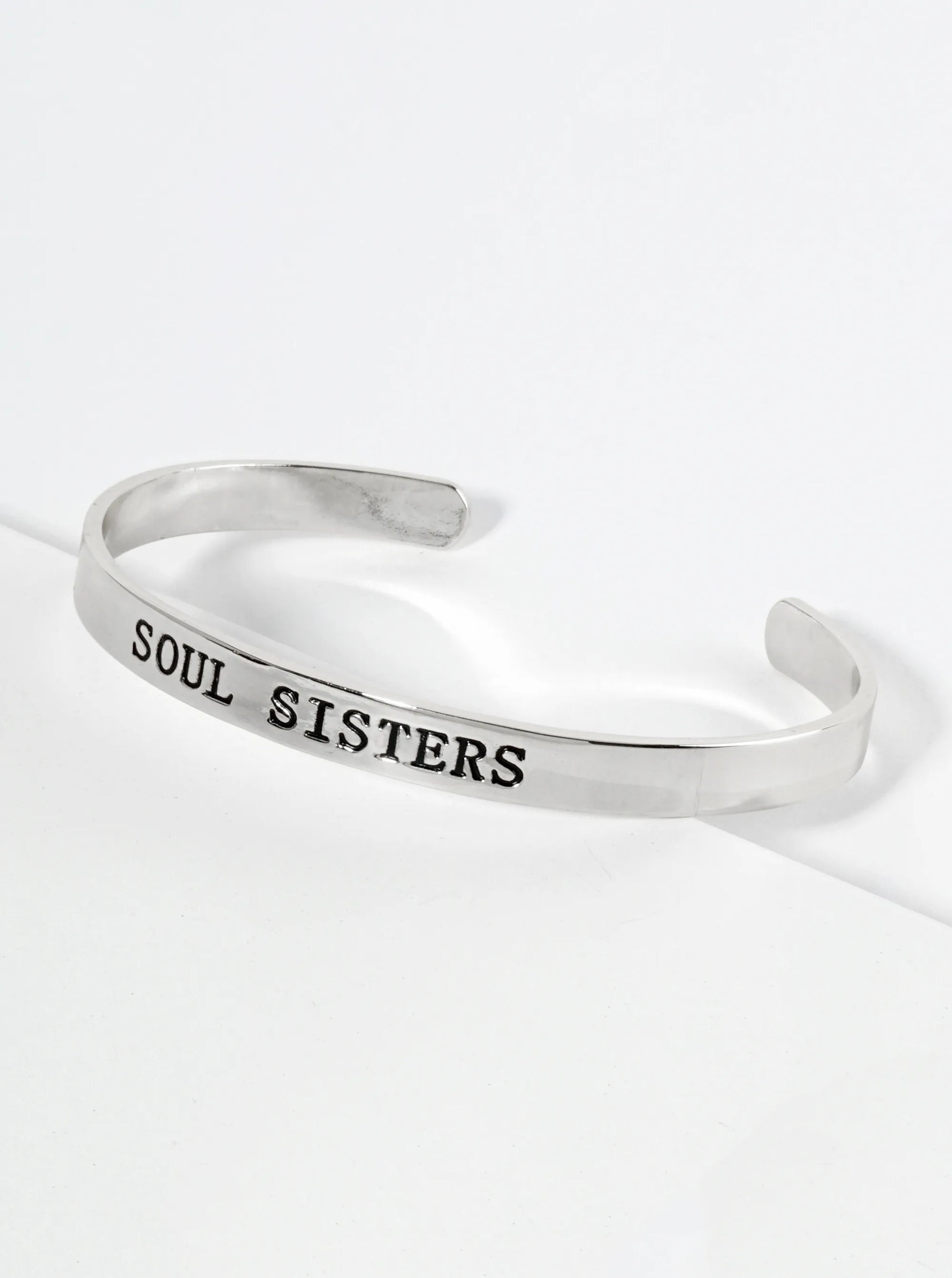 Soul Sisters Engraved 18K Gold Dipped Open Cuff Bangle Bracelet