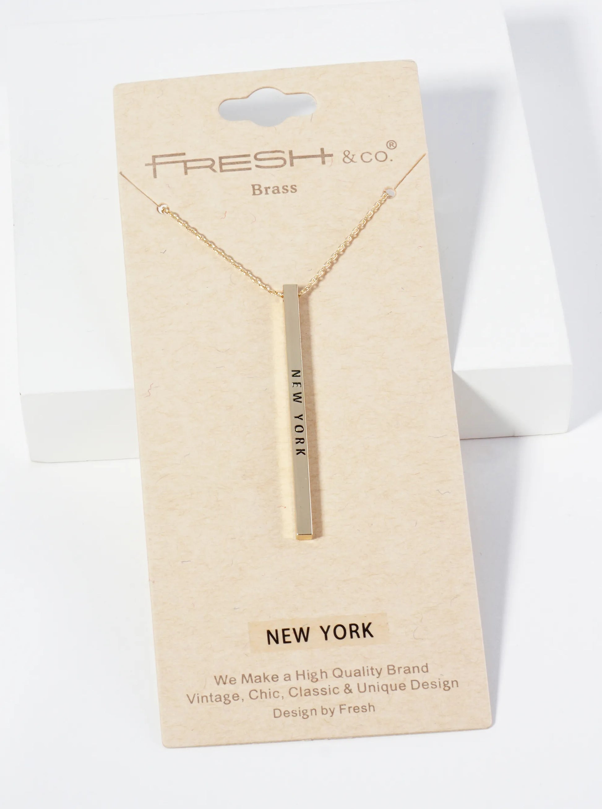 State Of New York Engraved Vertical Bar Pendant Necklace