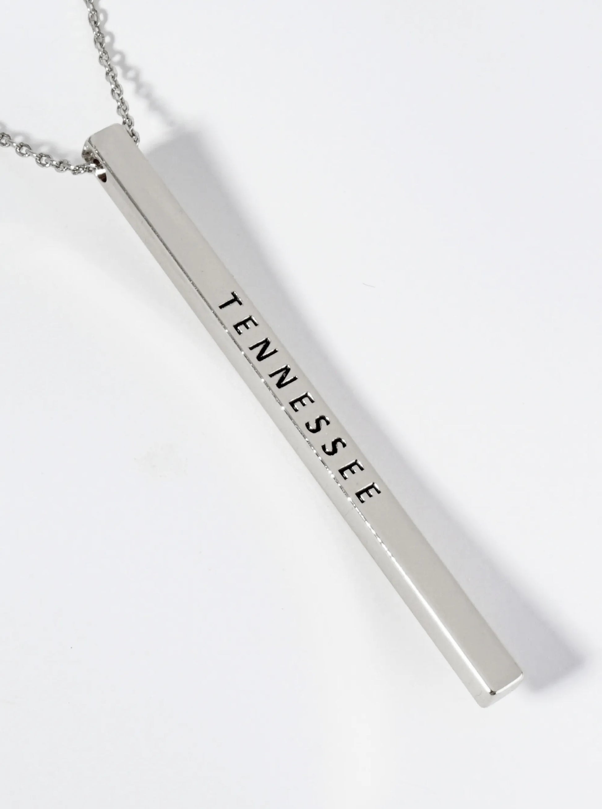 State Of Tennessee Engraved Vertical Bar Pendant Necklace
