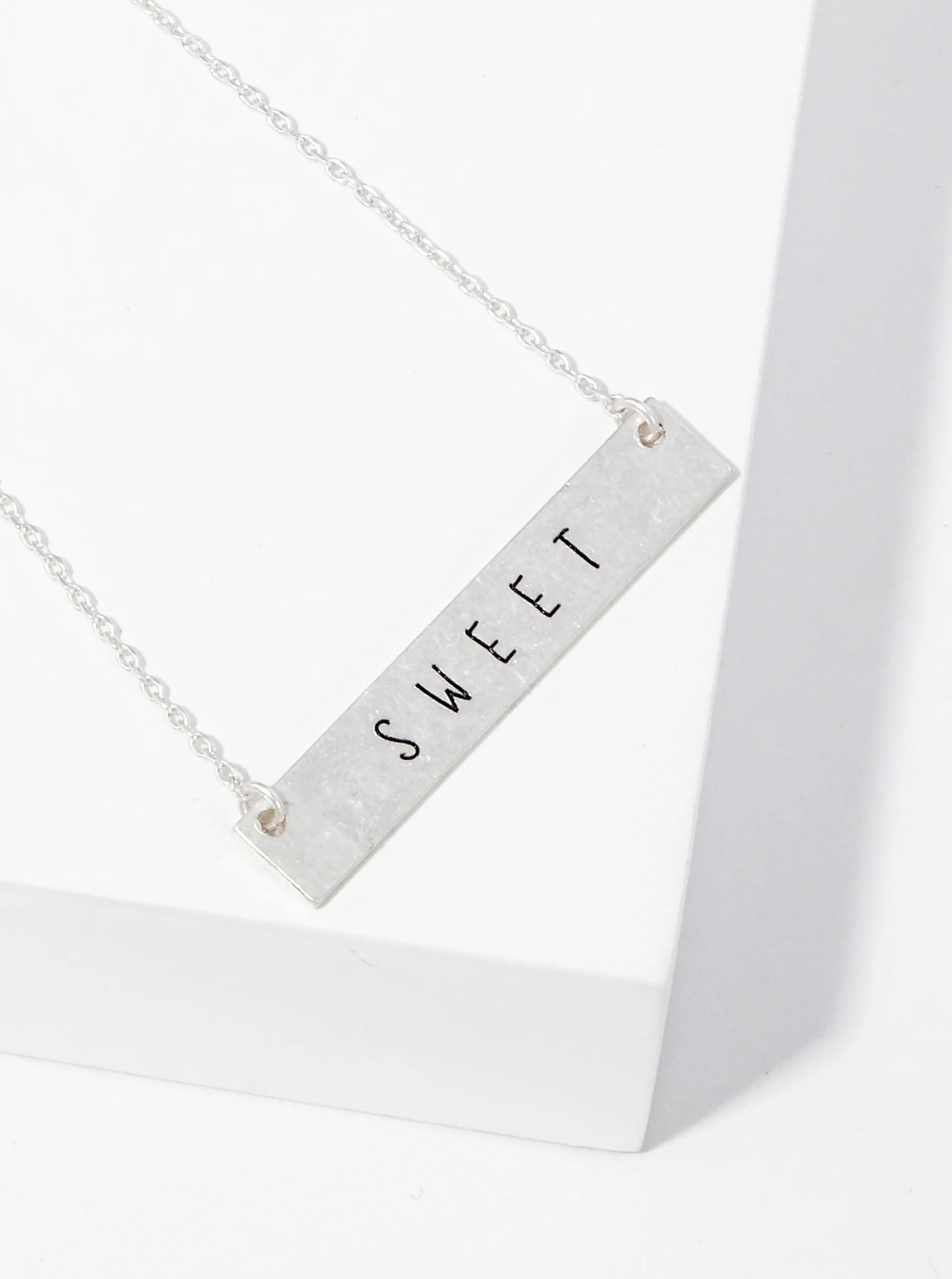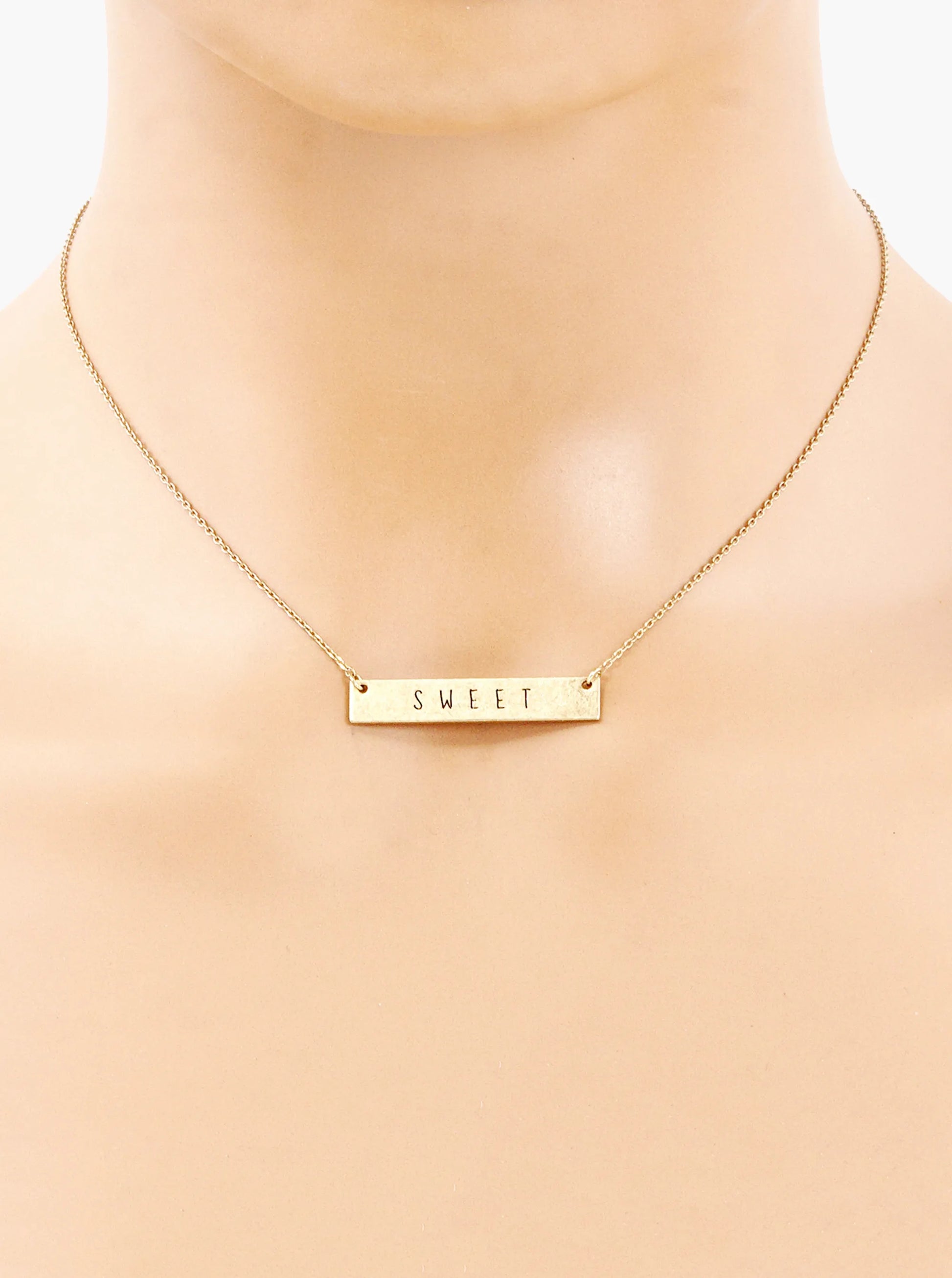 Sweet Engraved Horizontal Bar Pendant Necklace