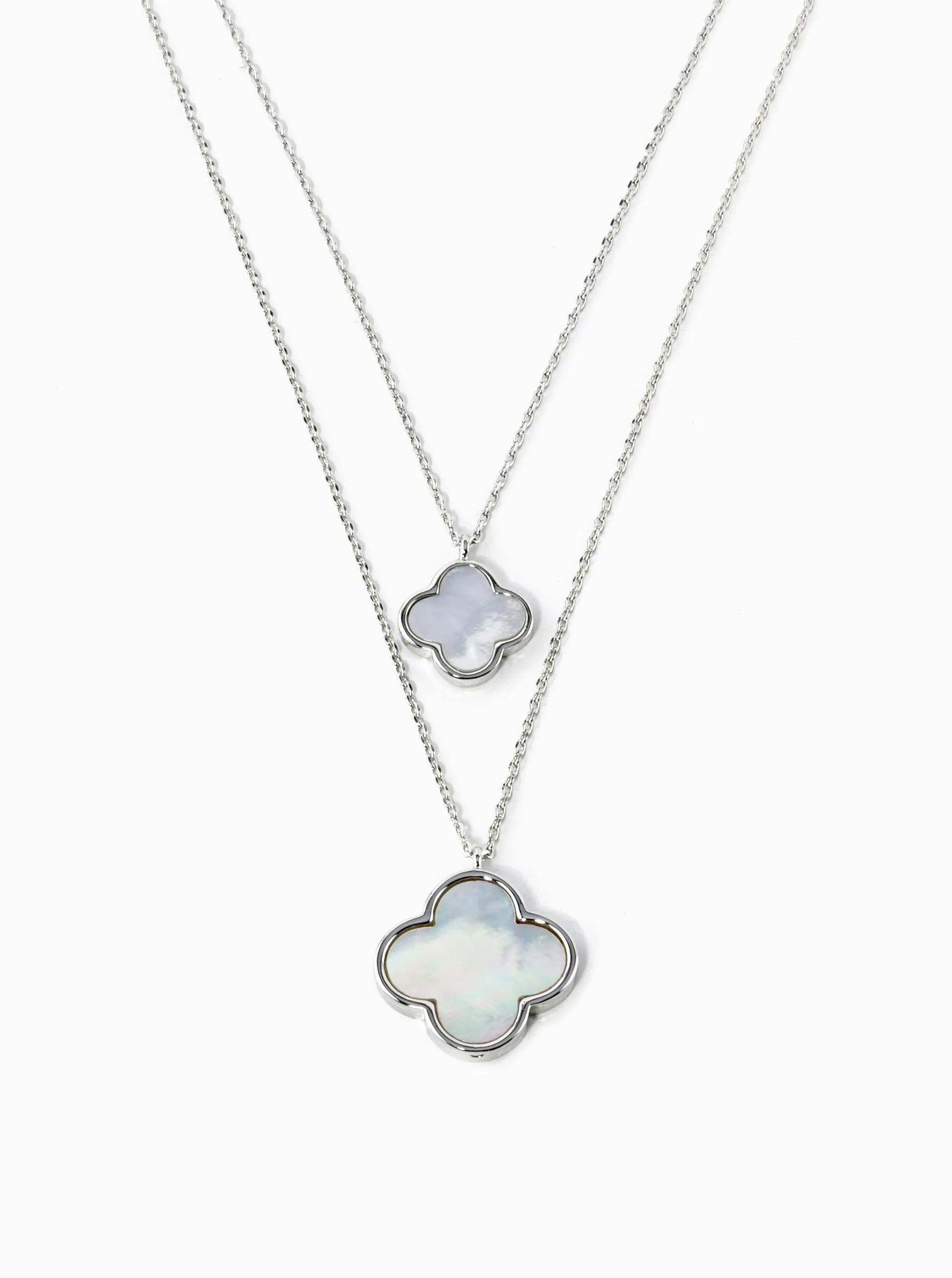 White Gold Dipped 17 And 12mm Double Quatrefoil Pendant Layered Necklace