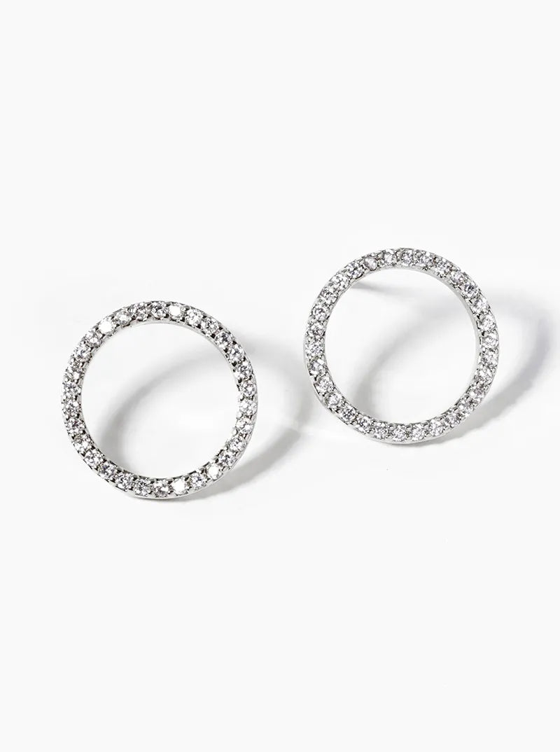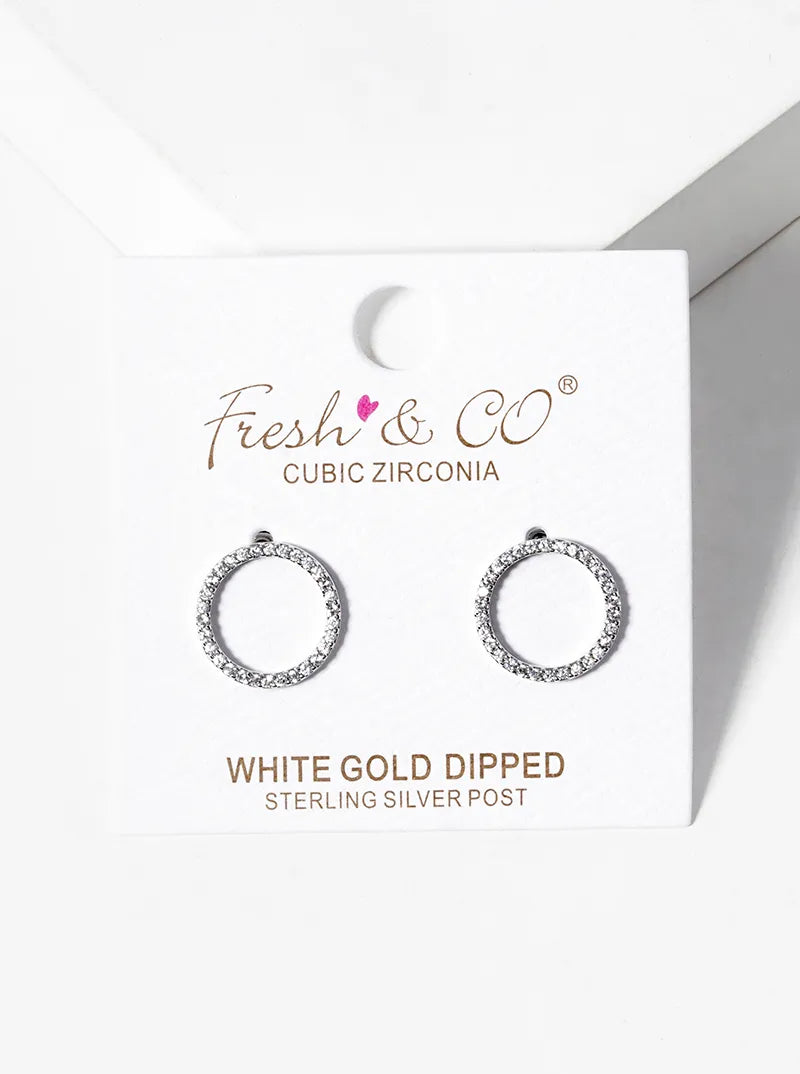 White Gold Dipped CZ Pave Circle Post Stud Earrings