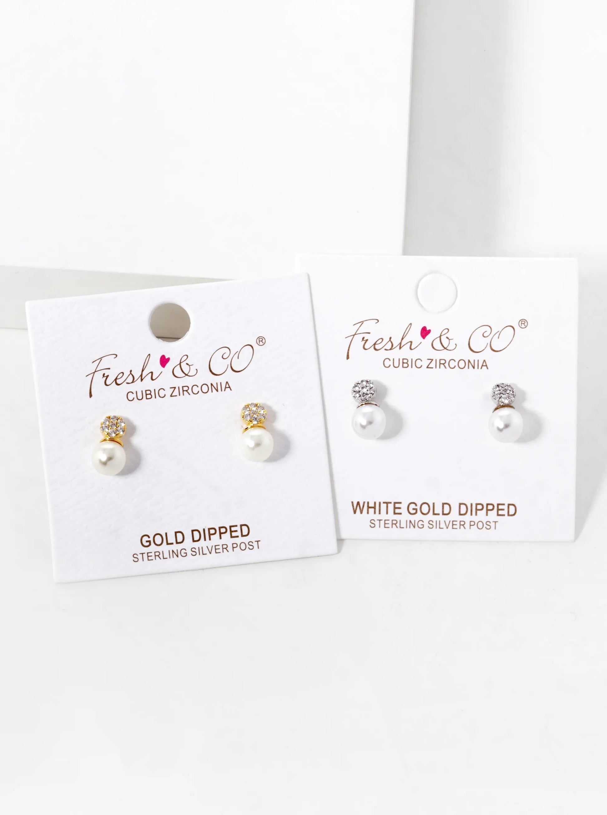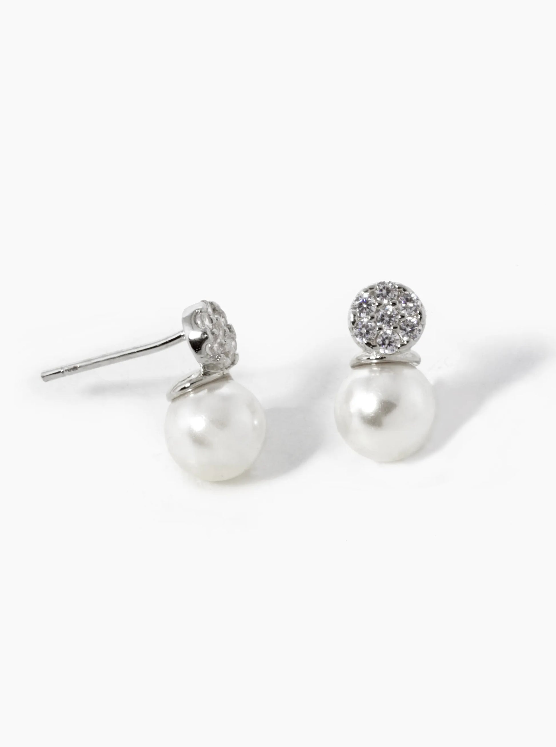 White Gold Dipped CZ Pave Round With Pearl Drop Stud Earrings