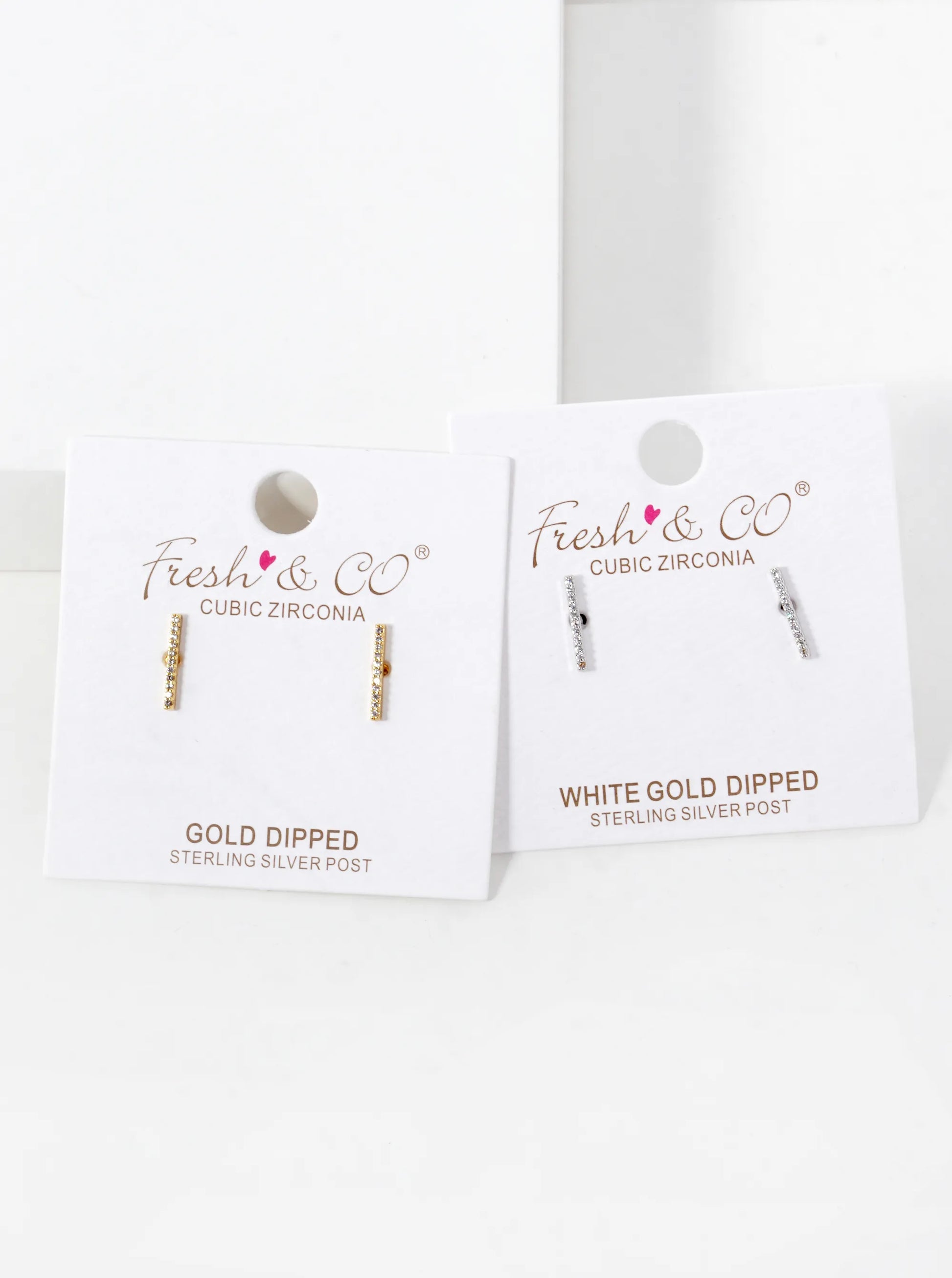 White Gold Dipped Delicate CZ Pave Bar Stud Earrings