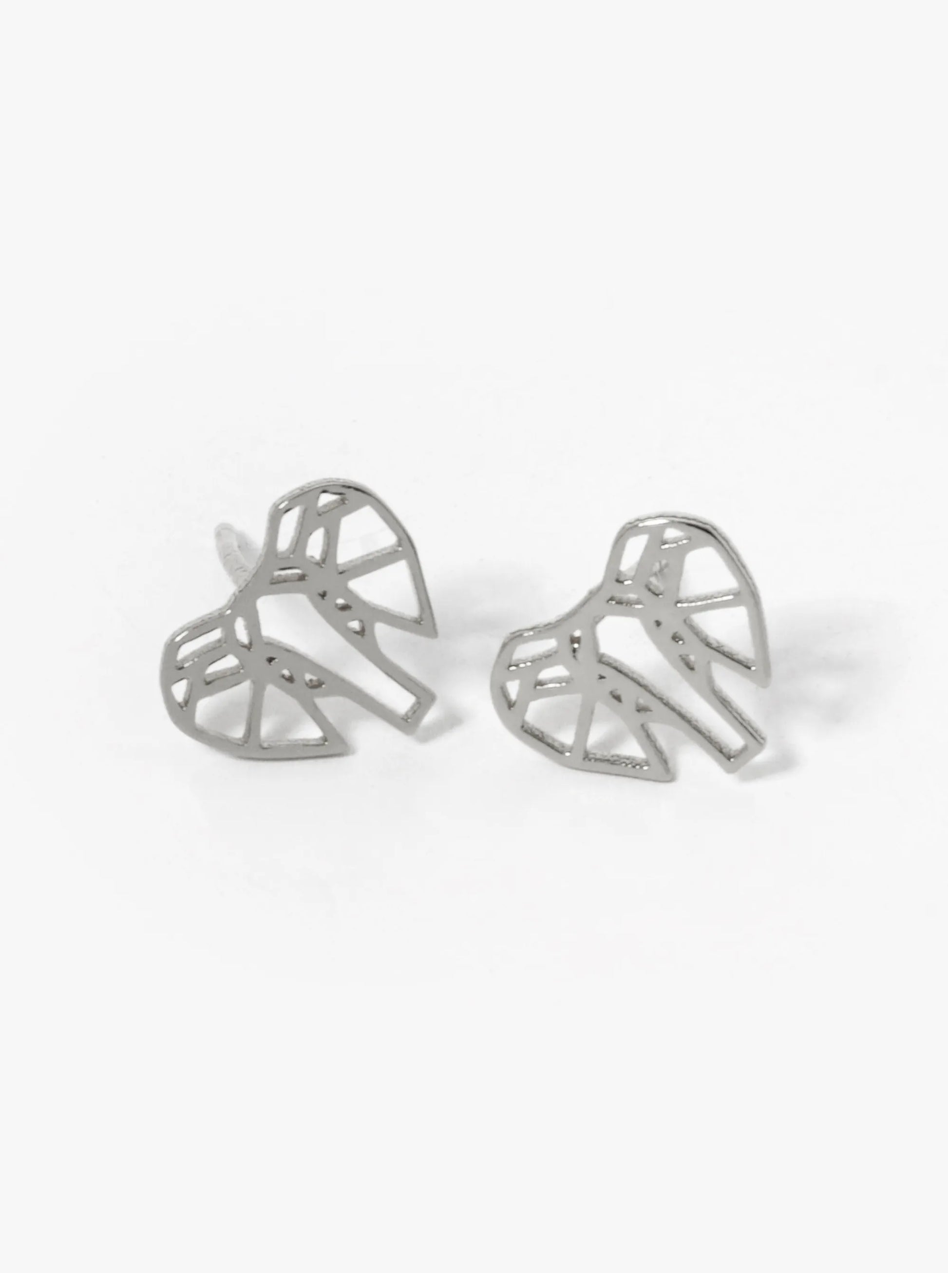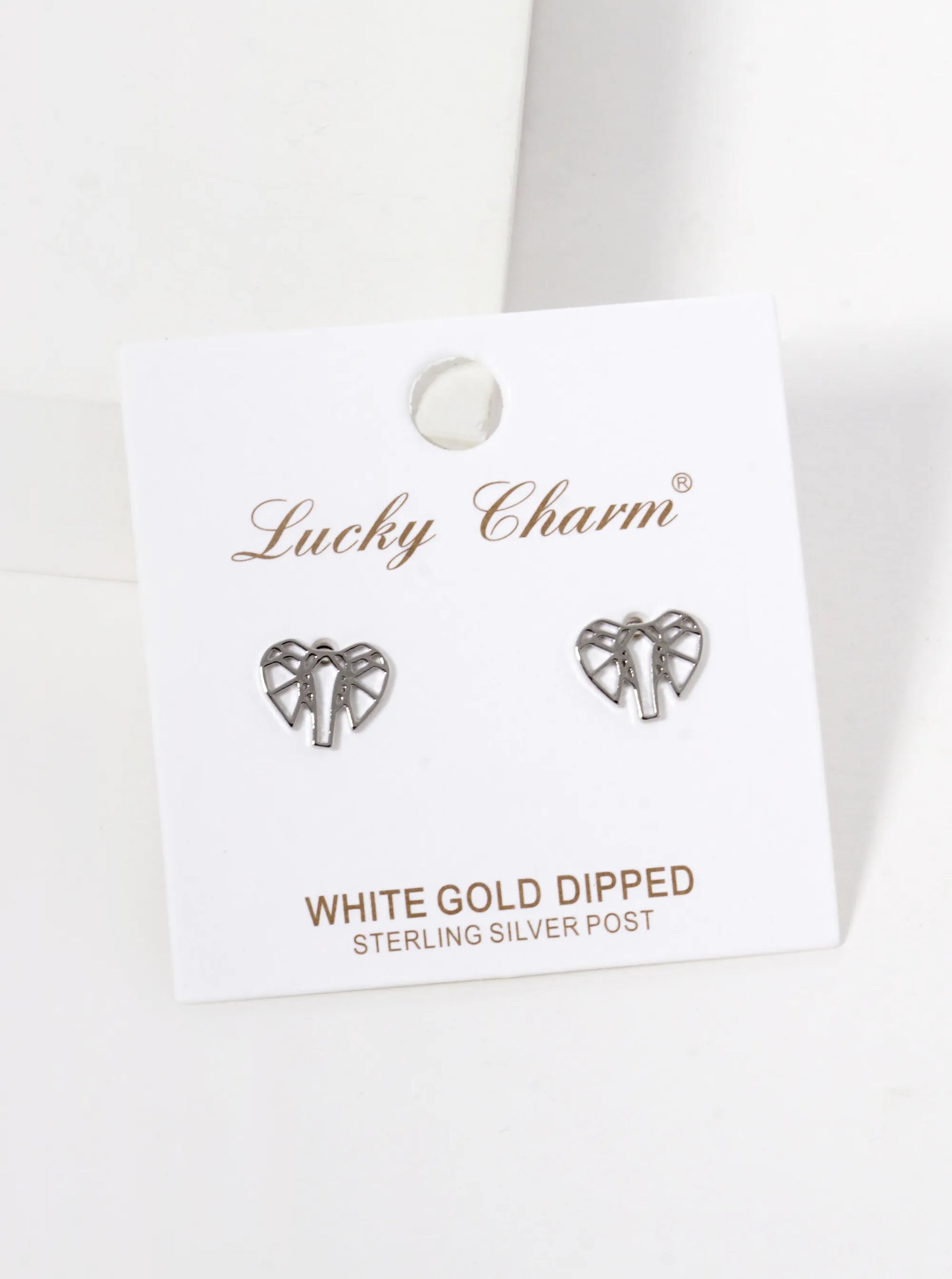 White Gold Dipped Geometric Elephant Stud Earrings