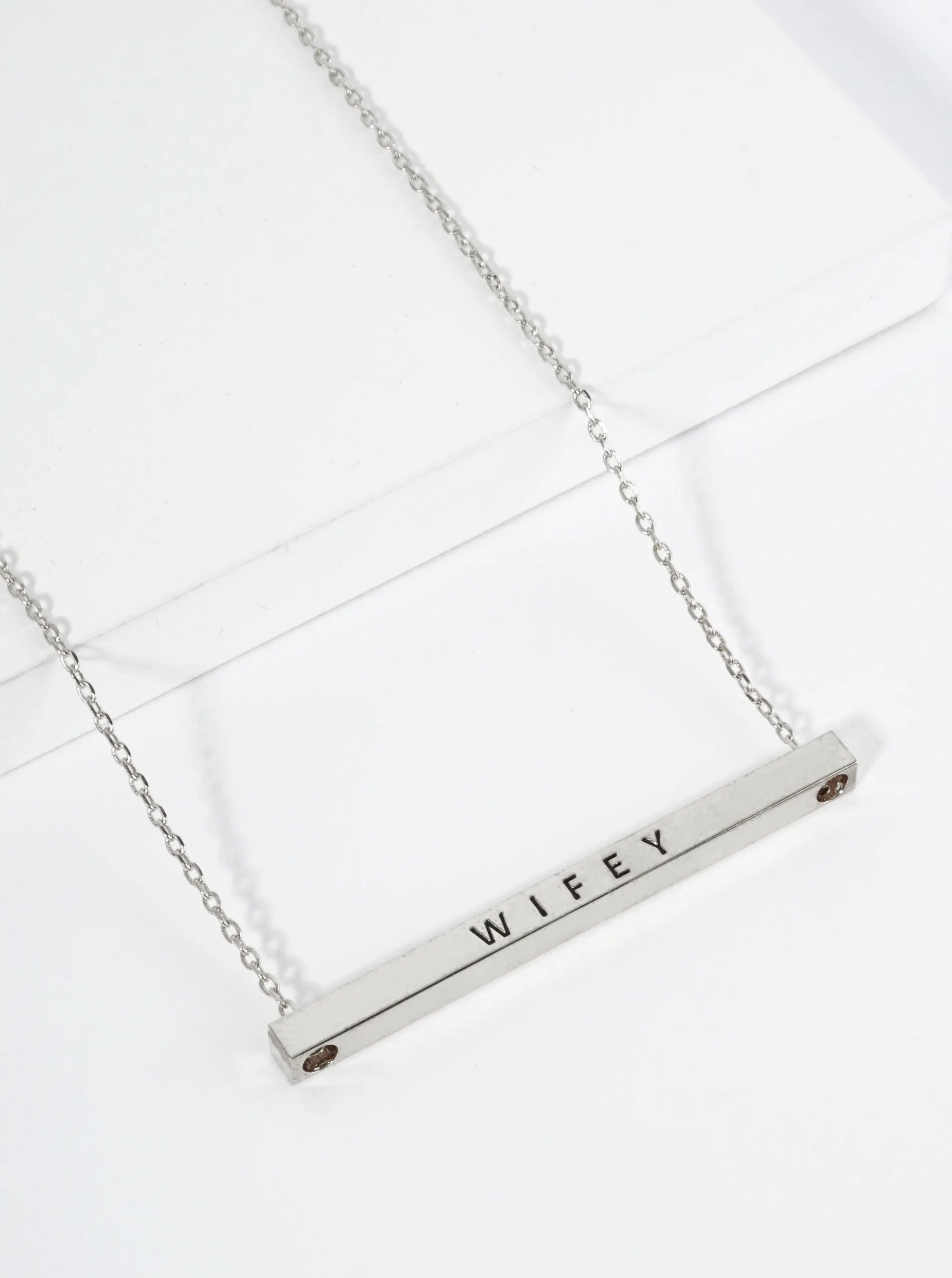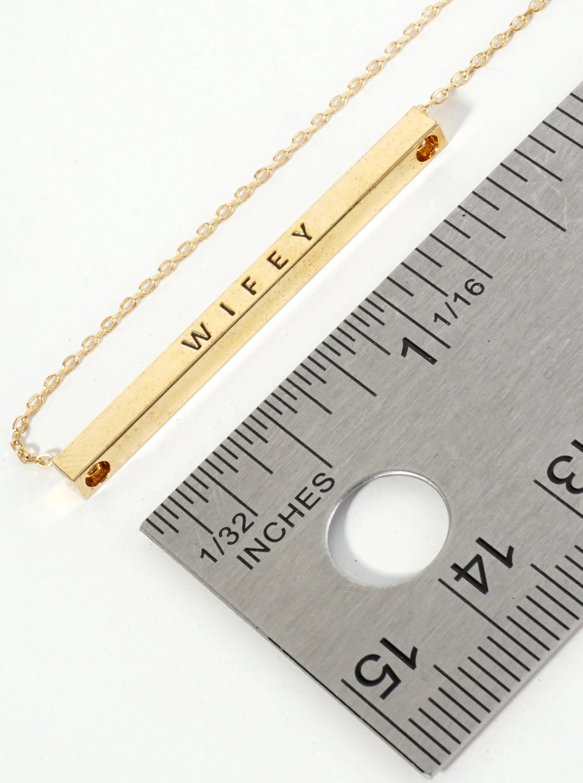 Wifey Engraved 18K Gold Dipped Horizontal Brass Bar Pendant Inspirational Necklace