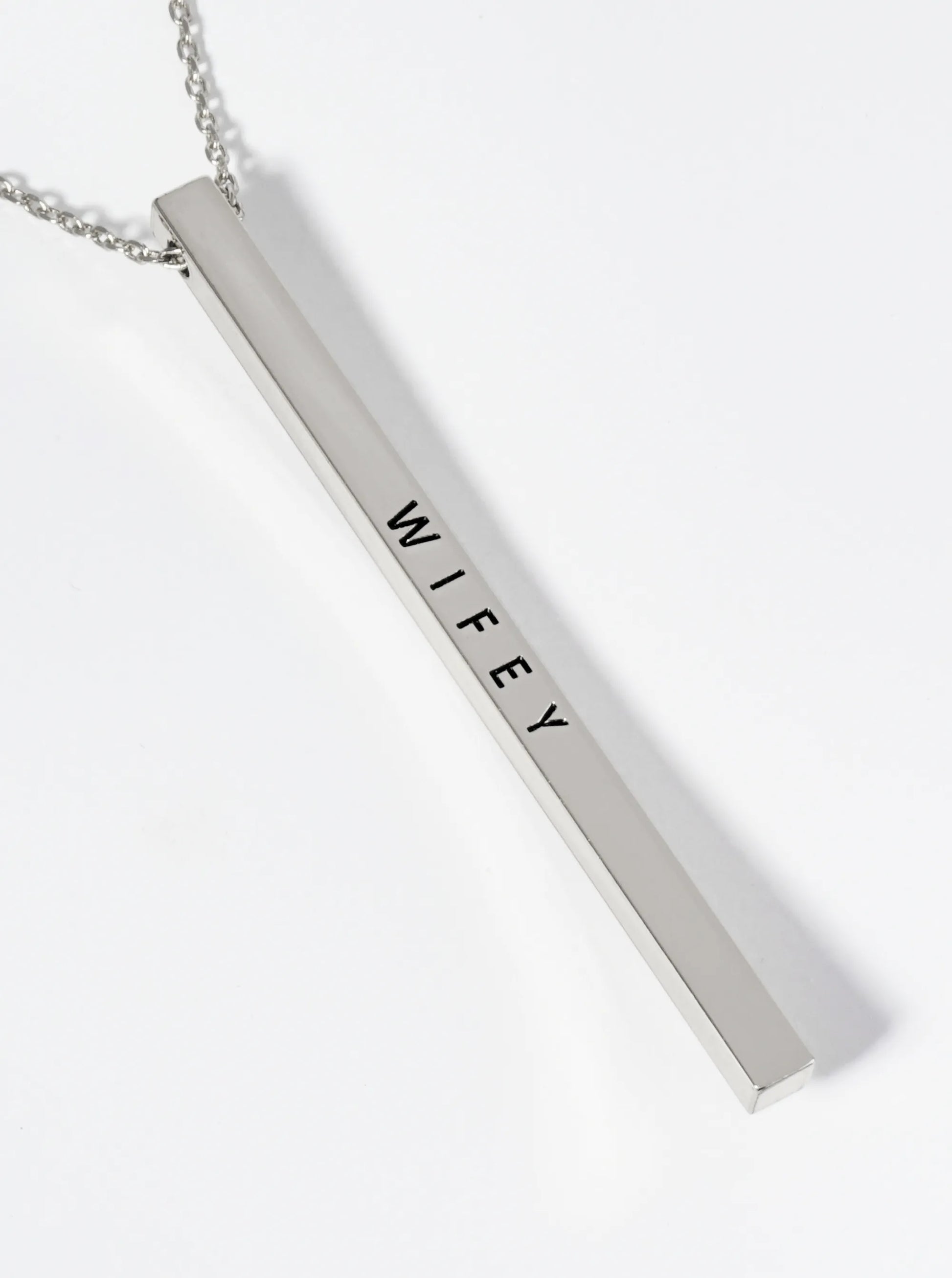 Wifey Engraved Vertical Bar Pendant Inspirational Necklace