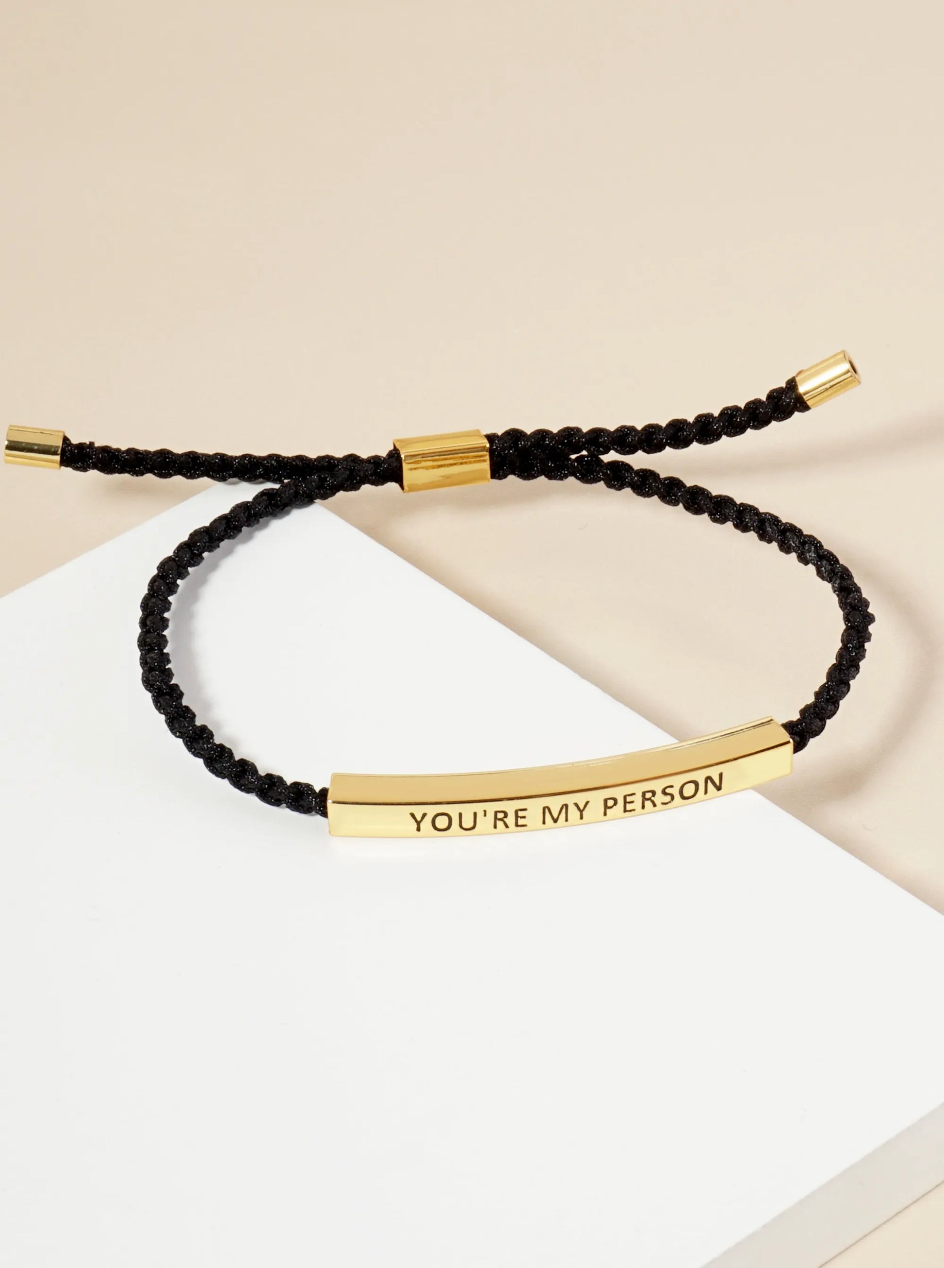 You Are My Person Engraved 18K Gold Dipped Curved Brass Tube Bar Adjustable Pull Tie Bracelet