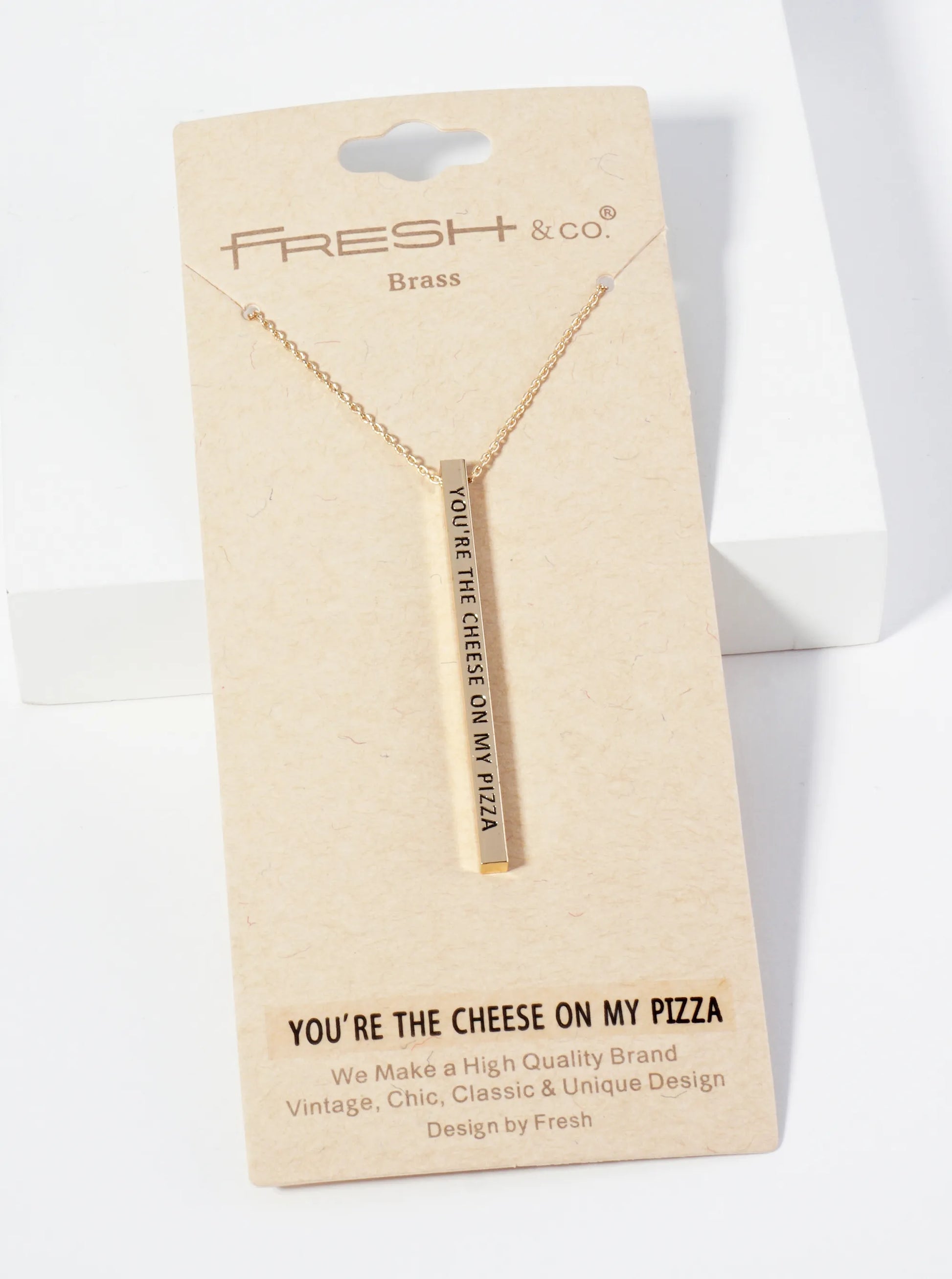 You Are The Cheese On My Pizza Engraved Vertical Bar Pendant Inspirational Necklace